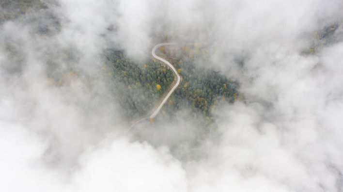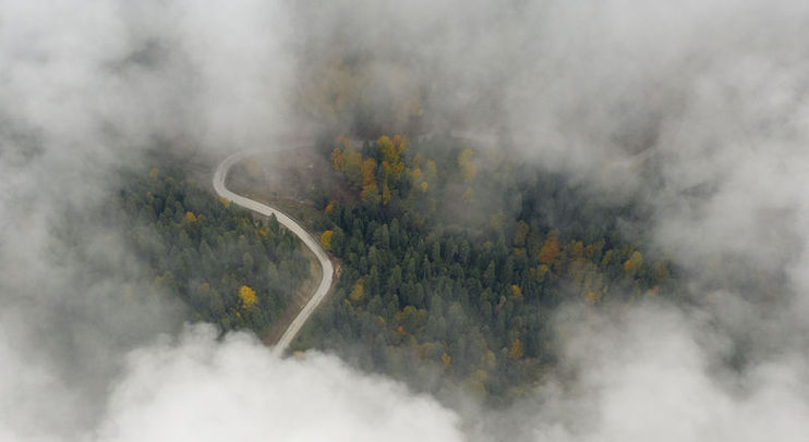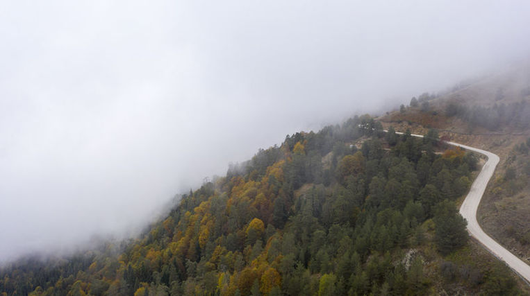Yedigöller Milli Parkı yolu üzerinde bulunan Ayıkayası mevkisinde etkili olan sis dronla görüntülendi.