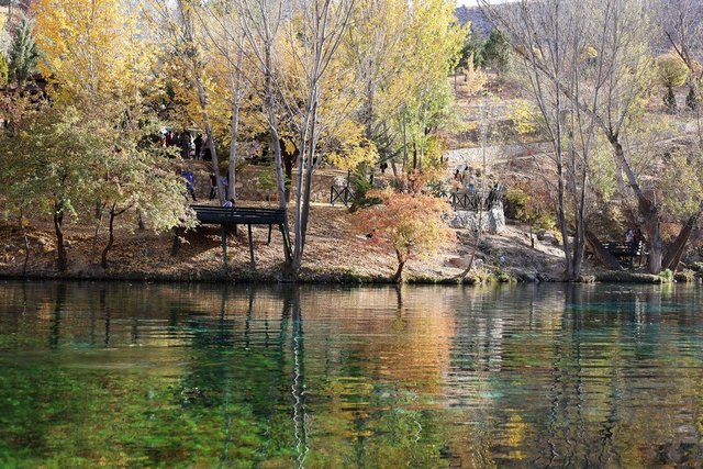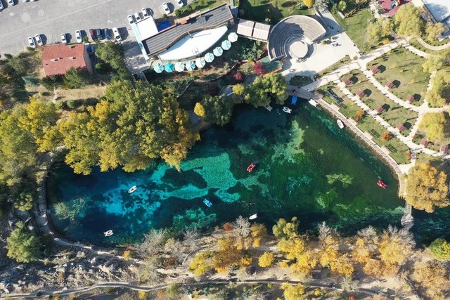 Gün ışığını en derin noktasına kadar yansıtan ve yukarıdan bakıldığında bir akvaryumu andıran göl, renk cümbüşüyle sonbaharın bütün güzelliklerini ziyaretçilerine yaşatıyor.
