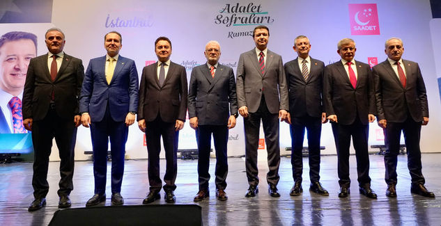 Yenikapı’da Dr. Mimar Kadir Topbaş Gösteri ve Sanat Merkezi’nde düzenlenen iftar programına, Saadet Partisi Genel Başkanı Mahmut Arıkan, CHP Genel Başkanı Özgür Özel, Demokrasi ve Atılım Partisi Genel Başkanı Ali Babacan, Gelecek Partisi Genel Başkanı Ahmet Davutoğlu, Yeniden Refah Partisi Genel Başkanı Fatih Erbakan, AK Parti Genel Başkan Vekili Mustafa Elitaş ile çok sayıda davetli katıldı. Programda siyasi liderler tarafından birlik ve beraberlik vurgusu yapıldı.
