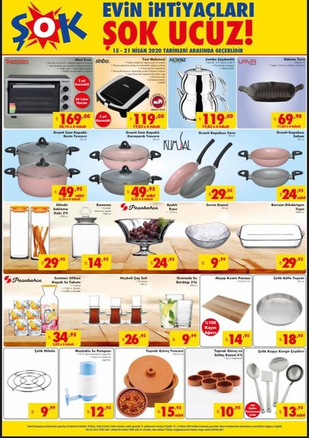 ŞOK 15-21 Nisan 2020 haftanın fırsatları kataloğu yayınlandı. ŞOK'da birbirinden çeşitli kampanyalı ürünler dikkat çekerken kişisel bakım ürünlerine ve mutfak eşyalarına kadar birçok yeni ürün raflardaki yerini alacak. ŞOK 15-21 Nisan kataloğunda indirimli ürünler fırsatlarıyla müşterileri bekliyor. İşte ŞOK 15-21 Nisan 2020 aktüel ürünler kataloğu...