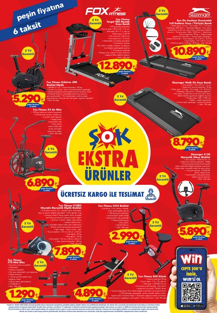 ŞOK 23-29 Ekim aktüel kataloğunda sporseverler için birçok ürüne yer verdi. Bu hafta bisiklet eliptik, koşu bandı, manyetik dikey bisiklet gibi birçok spor aleti satışa çıktı. Öte yandan, küçük ev aletleri, mutfak eşyaları, mobilya gibi farklı ürünler de bulunuyor. İşte, ŞOK 23-29 aktüel kataloğu...