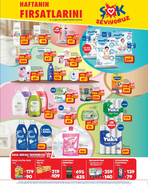 ŞOK 25 Mart aktüel kataloğu yayınlandı. Bu Çarşamba günü ŞOK marketlerde temel gıda ürünlerinden teknolojik aletlere, mutfak gereçlerinden kişisel bakım ürünlerine, ev eşyalarından aksesuara, temizlik malzemelerinden elektronik eşyalara kadar birçok ürün satışa çıkacak ve raflarda yerini alacak. İşte 25-31 Mart ŞOK aktüel broşürü...
