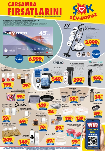 ŞOK, 8-14 Ocak arasında geçerli olacak aktüel kataloğunu yayınladı. Bu hafta başta ısıtıcı çeşitleri, olmak üzere, giyim, mutfak gereçleri, mont modelleri, ev terliği, temzilik malzemeleri geliyor. İşte, ŞOK 8 Ocak aktüeli...