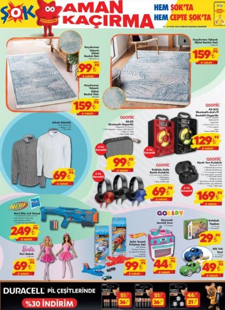 Kaydırmaz tabanlı dijital baskılı halı, erkek gömlek, hoparlör, kulaklık, oyuncak çeşitleri ve daha birçok ürün fırsatlarıyla alışveriş severleri bekliyor. Peki, bu hafta ŞOK'ta neler var, hangi, ürünler indirime girdi? İşte ŞOK aktüel 21 - 27 Eylül kataloğu...
