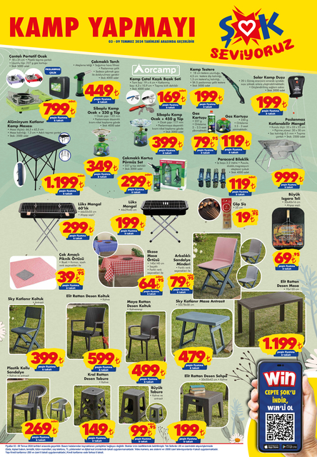 ŞOK'ta bu hafta birçok ürün satışa çıkıyor. Bu hafta, kamp malzemeleri, koşu bandı, spor bisikleti başta olmak üzere; elektrikli süpürge, yemek masası ve klima gibi birçok ürün raflardaki yerini aldı. İşte, ŞOK 3 Temmuz aktüel kataloğu ile indirimli ürünler...