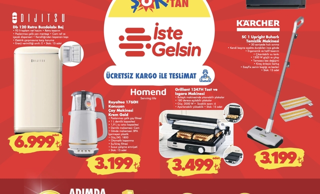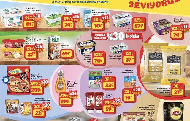 ŞOK aktüel ürünler kataloğu indirim listesi yayınlandı. 28 Ocak'tan itibaren beyaz peynir, sürülebilir çikolata, pasta tabanı, ketçap, bal, bulgur ŞOK aktüel indirimlerinde yer alacak. Öte yandan halı yıkama makinesi, yoğurma makinesi, ütü ve dikey elektrikli süpürge alıcılarını bekliyor. Aktüel kataloğu 3 Şubat'a kadar geçerli indirimleri sundu. İşte ŞOK aktüel ürünler kataloğu indirimlerinin tamamı