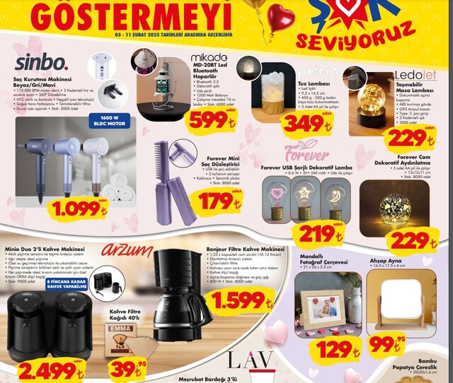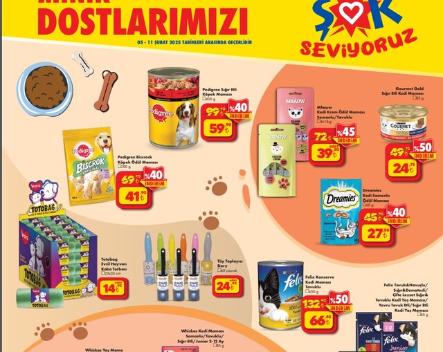 Yeni haftanın ŞOK aktüel ürünler kataloğu belli oldu. Yeni haftaya özel ŞOK aktüel ürünlerinde kedi ve köpek mamaları indirimli listede yer aldı. Öte yandan tuz lambası 349 liradan ve taşınabilir masa lambası 229 liradan, saç düzleştirici de 179 tl fiyat bulunurken bu hafta USB şarjlı dekoratif lamba 219 TL'den satışa çıkacak. İşte 5-11 Şubat 2025 ŞOK aktüel ürünler kataloğu