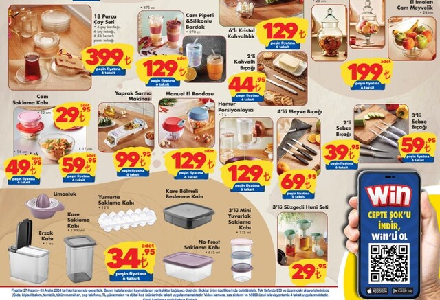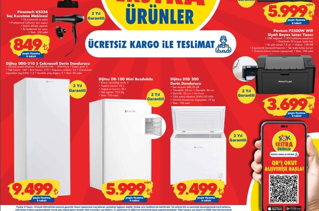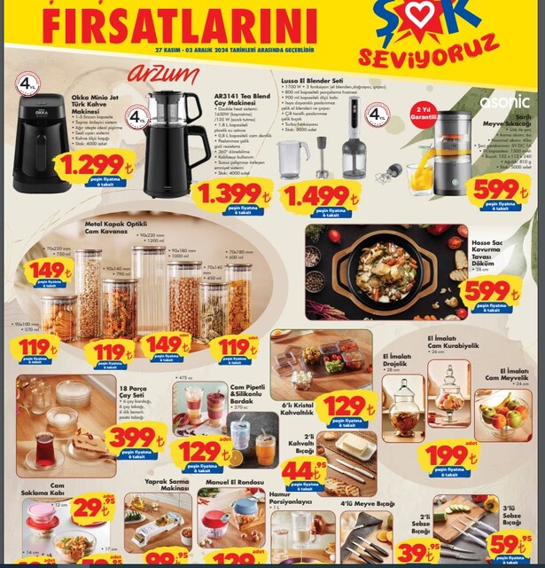 ŞOK aktüel ürünler kataloğu 27 Kasım-3 Aralık indirimli listesi yayınlandı. ŞOK bu hafta indirimli gıda ürünlerinin yanı sıra ev eşyaları, teknolojik cihazlar ve giyim ürünleri satılıyor. Öte yandan kahve makinesi 1.299 TL iken çay makinesi 1.399 TL'den satışa çıktı. İşte 27 Kasım- 3 Aralık ŞOK aktüel ürünler indirimli tam liste