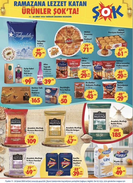 ŞOK aktüel ürünler kataloğunda Ramazan ayına özel fırsatlar devam ediyor. 11 Şubat'ta başlayan ŞOK indirimleri 24 Şubat'a kadar devam edecek. Hem Ramazan ayına hazırlık hem yaklaşan Sevgililer Günü için alışveriş yapmak isteyenler ŞOK aktüel ürünler kataloğu indirimli tam listesine erişmeye çalışıyor. İşte, 11-24 Şubat ŞOK aktüel ürünler indirim listesi