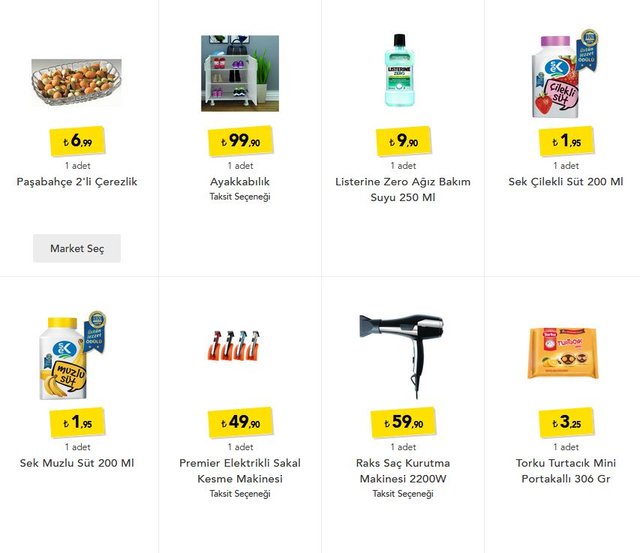 Sek çilekli süt 1,95 TL