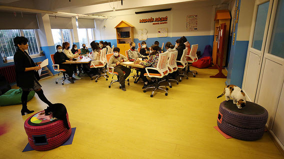 Yuvaları sınıf olan kediler, öğrencilerle derse giriyor. Kedilerin tüm ihtiyaçları ise öğrenciler tarafından karşılanıyor. Öğrencilerin "Betül" ve "Zeytin" adını verdiği kediler ders esnasında zaman zaman sıraların üzerinde geziyor. Kitap okuma esnasında puflara oturan öğrencilerin yanına gelen kediler çocuklarla vakit geçiriyor.