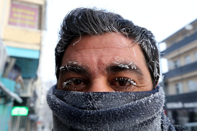 İHA'da yer alan habere göre de kentte etkili olan soğuk hava vatandaşlara zor anlar yaşattı. Dışarıda olanların kaş ve kirpikleri dondu.