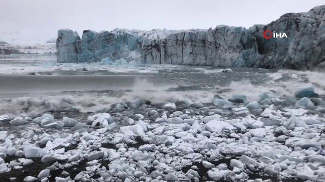 İzlanda'nın Jökulsarlon Gölü'nde turistlerin buzulları hayranlıkla seyrettiği sırada büyük bir buz kütlesi göle düştü. Buz kütlesinin oluşturduğu dev dalgalar turistlerin hayatını tehlikeye attı