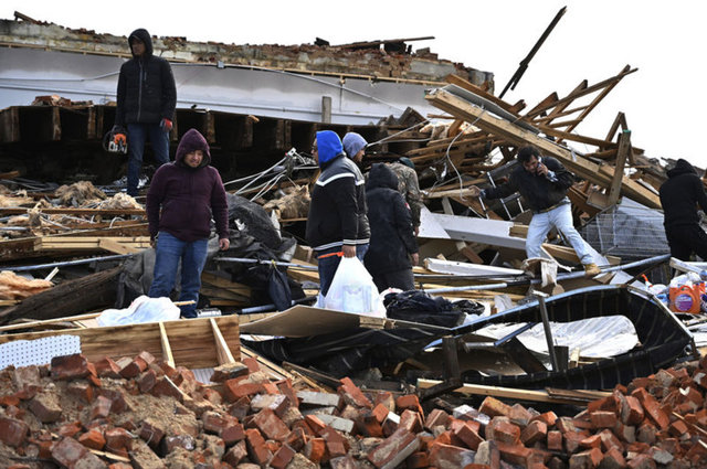ABD'nin orta batı eyaletleri Arkansas, Illinois, Kentucky, Missouri ve Tennessee hortum kasırgasından etkilendi.