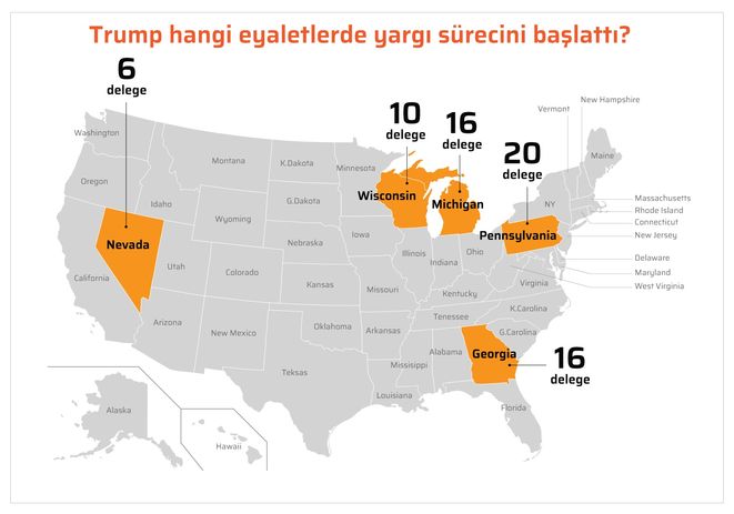 Başkan Trump bu kritik eyaletlerin dördünde ve Nevada'da oyların yeniden sayılmasını talep etti.