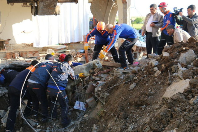 Bu arada, Yavuzselim Mahallesi'nde iki katlı bir binanın altında yer alan ve deprem sırasında bir bölümü yıkılan alanda mahsur kalan küçükbaş hayvanların kurtarılması için AFAD ekiplerince çalışma başlatıldı. İş makineleriyle yürütülen çalışmalar sırasında bazı hayvanlar canlı olarak bulundukları yerden çıkarıldı. Birkaç hayvanın öldüğü belirlendi.
