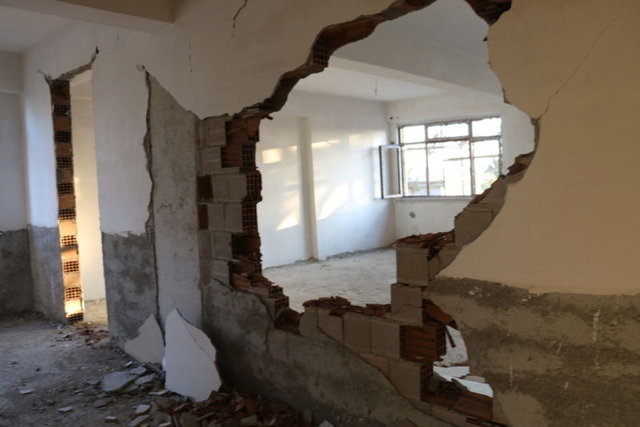 Depremzedelerden Ali Yılmaz, yaptığı açıklamada, sarsıntılar nedeniyle babasına ait evin kolonlarında hasar oluştuğunu dile getirdi.