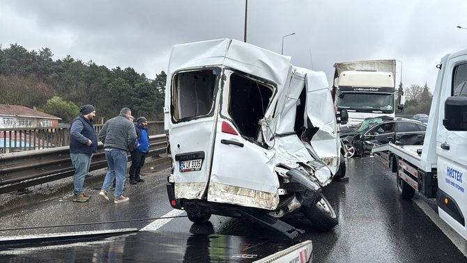 Kocaeli'nde, Otoyolun İstanbul istikameti Çınarlıdere Viyadüğü mevkiinde 3 otomobil, 2 TIR ve 1 panelvanın karıştığı zincirleme kaza meydana geldi.