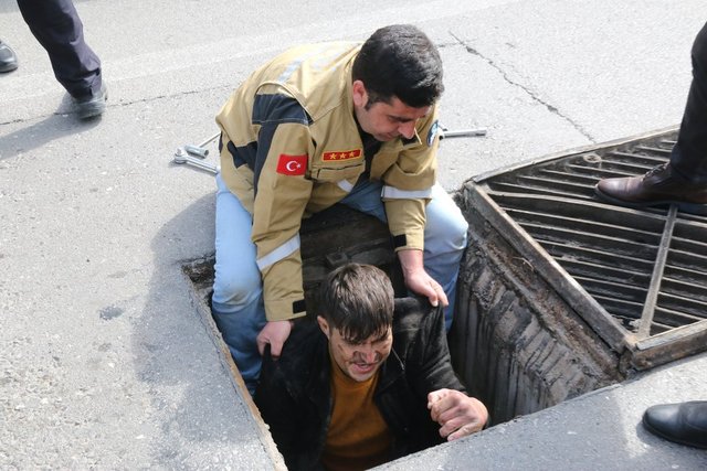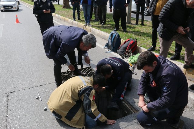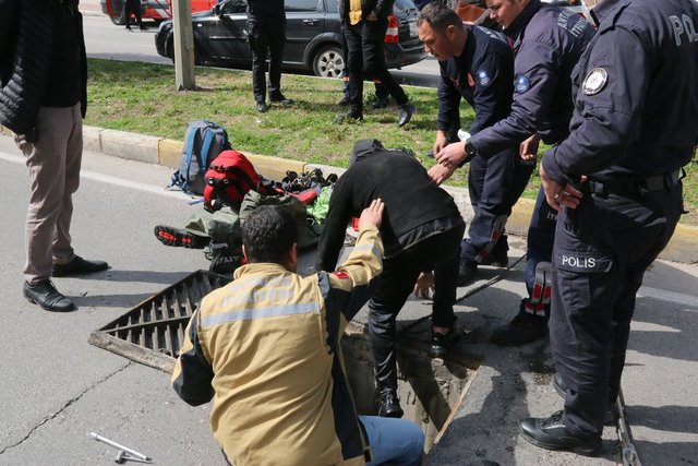 Antalya'da hurda malzeme toplamak için bisiklet ile kanalizasyona giren iki arkadaş malzemeler konusunda anlaşamayınca kanalizasyonda tartışıp mahsur kaldı. Yardım çığlıkları sonrası rögar kapağını kaldıran ekipler, 10 metre derinlikten iki kişiyi çıkardı. Vatandaşlar ise o anları film sahnesi izler gibi izledi.