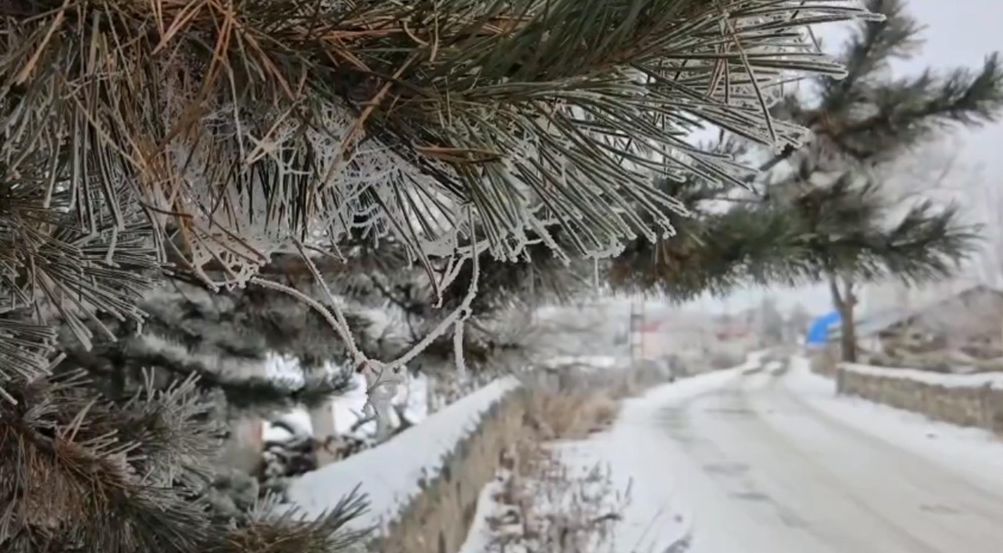 Ardahan'ın Göle ilçesi, sıfırın altında 20 dereceyi gördü. Ağaçlarda kırağı oluştu, esnaf soğuktan korunmak için halay çekti