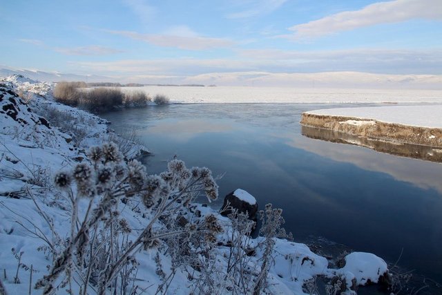 Sıcaklık eksi 18 dereceye düştü! Ardahan'da Kura Nehri buz tuttu