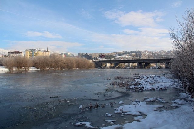 Türkiye'nin doğusunda soğuk hava etkili oluyor. Ardahan'da bugün sıcaklık eksi 18,4 dereceye kadar düştü. Kentte Kura Nehri'nin yüzeyi buz tuttu