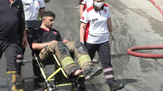 Yaralı itfaiye eri olay yerindeki ambulansla hastaneye götürüldü.