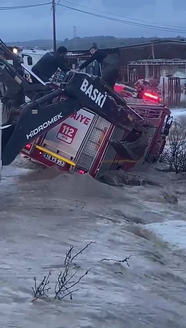 Balıkesir Büyükşehir Belediyesi itfaiye ekipleri, sağanak sebebiyle Çanakkale-İzmir kara yolunun Ayvalık yakınlarındaki Tellikavak mevkisinde yolda kalan midibüsteki 22 kişiyi tahliye etti.
