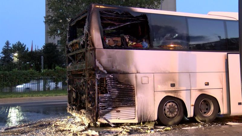 Beşiktaş'ta, arıza yapan yolcu otobüsünde yangın çıktı