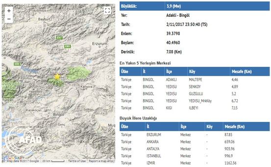 Saat 23:50'de merkezi Bingöl'ün Yedisu ilçesi olan 3,9 büyüklüğünde bir deprem kaydedildi.