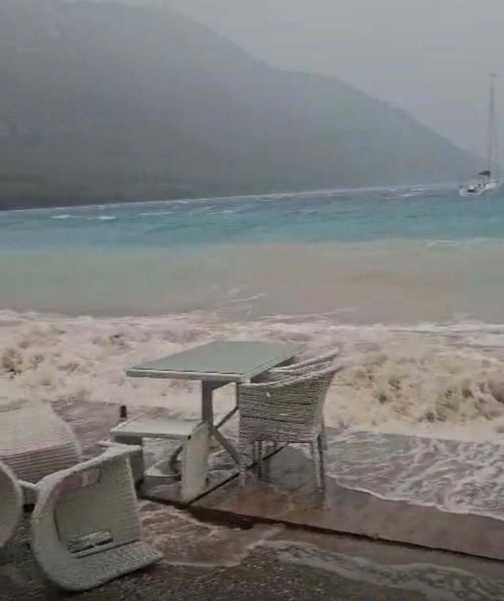 Öte yandan Akbük'te de sabah etkisini arttıran kuvvetli fırtına, kıyı şeridinde metrelerce yükselen dalgalara neden oldu. Dalgalar zaman zaman yola kadar taştı.