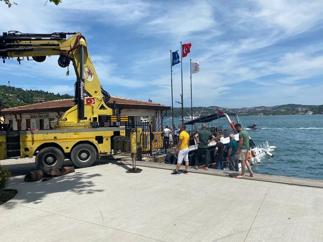 Beşiktaş'ta su alarak batan yat vinç yardımıyla çıkarıldı