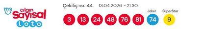 13 NİSAN 2026 ÇILGIN SAYISAL LOTO SONUÇLARI: