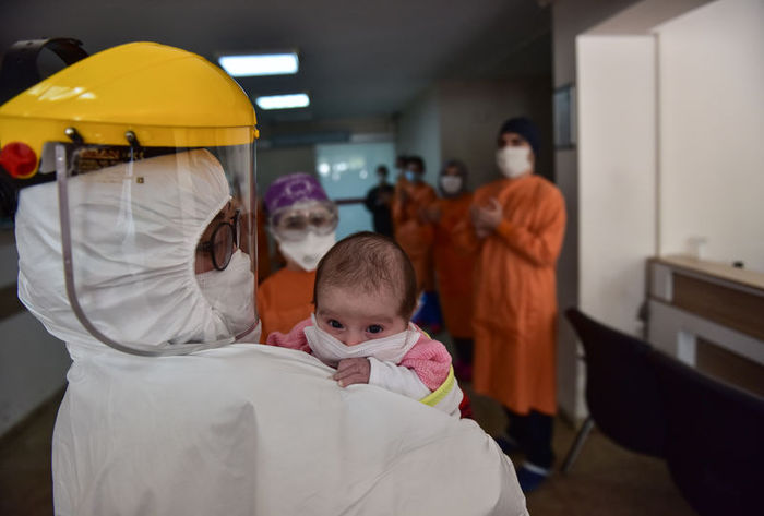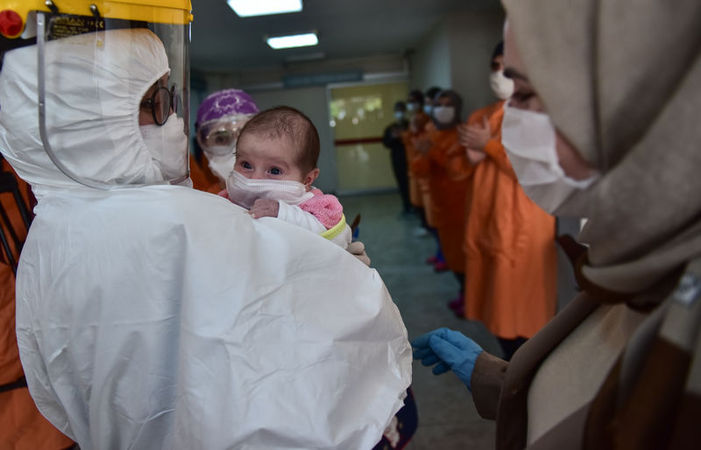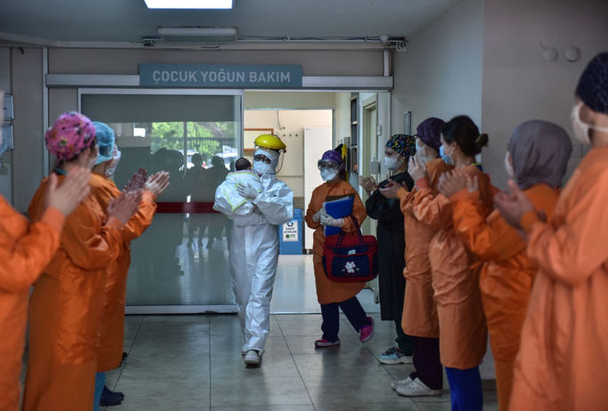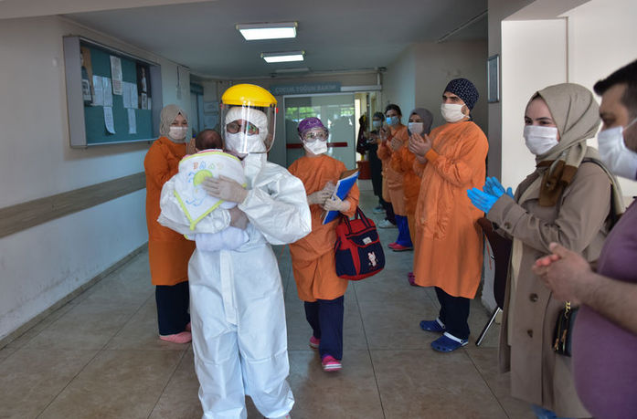 Türkiye'nin en küçük koronavirüs hastalarından 45 günlük Amine bebek sağlığına kavuştu. Bir haftadır tedavi gördüğü yoğun bakımdan sağlık çalışanlarının alkışları arasında çıkarıldı. Servise çıkarılan bebeğin, sağlık durumu iyiye gidiyor