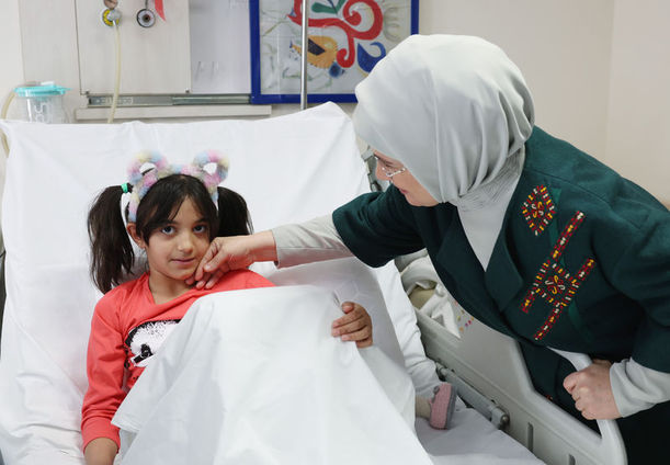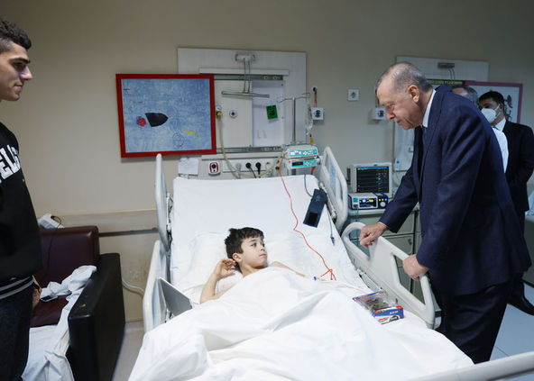 Cumhurbaşkanı Recep Tayyip Erdoğan ve eşi Emine Erdoğan, Kahramanmaraş merkezli depremlerden etkilenen ve tedavi görmek için Ankara Üniversitesi Cebeci Araştırma ve Uygulama Hastanesine sevk edilen depremzede çocukları hastanede ziyaret etti.