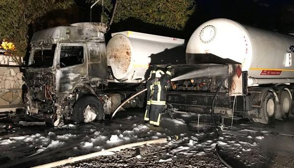 Alınan bilgiye göre, Bağbaşı Mahallesi Denizli-Antalya Karayolu'ndaki bir akaryakıt istasyonunun arka kısmında bulunan depoya LPG boşaltımı sırasında yangın çıktı.