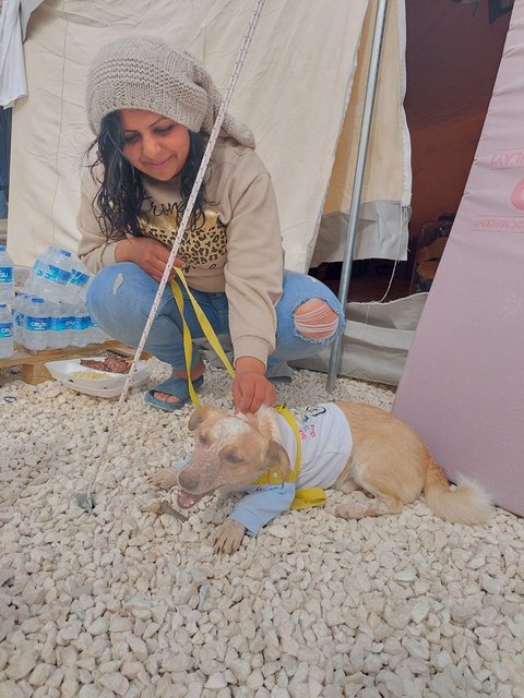 Defne'de yaşayan Elif Belli, depremden 15 gün önce, 2.5 aylık Rus finosu 'Ares' isimli bir köpeği sahiplendi. Deprem gecesi köpeğinin ısrarlı havlamalarıyla uyanan Belli, ağır hasar gören evinden 3 çocuğuyla birlikte çıkmayı başardı. Elif Belli, "Depremden 15 gün önce sahiplendim, büyük bir tesadüf oldu. Yaşıyorsak köpeğim ve komşularım sayesinde. Çıkarken de başımıza bir şey düşebilirdi. Korkuyla sağlıklı düşünemiyorsunuz. Evden bir an önce çıkıp çocuklarımı ve köpeğimi kurtarmak istedim" dedi.
