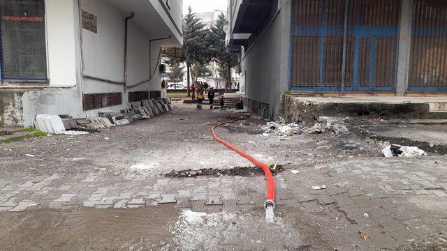 Su baskınında hamile F.T., fenalaşırken, durum ekiplere bildirildi. F.T. hastaneye kaldırıldı, hasar oluşan işyerinde ise su tahliyesi yapıldı.