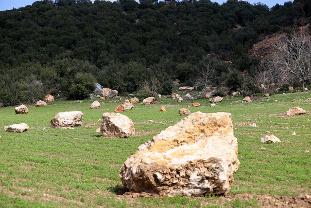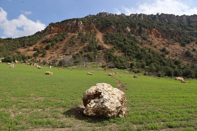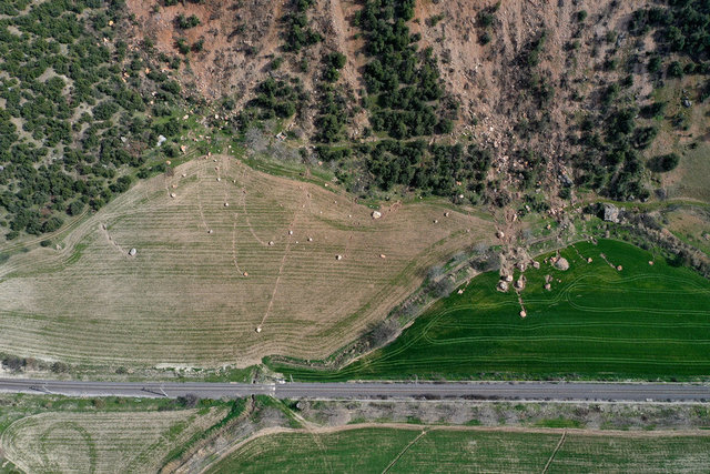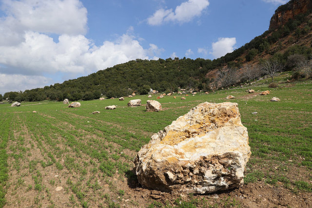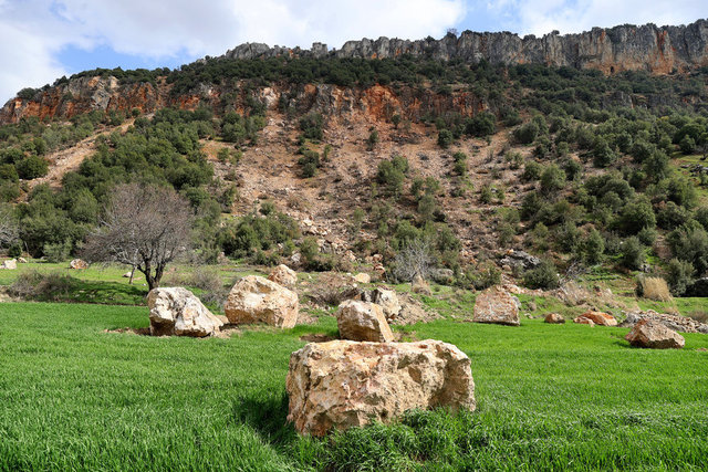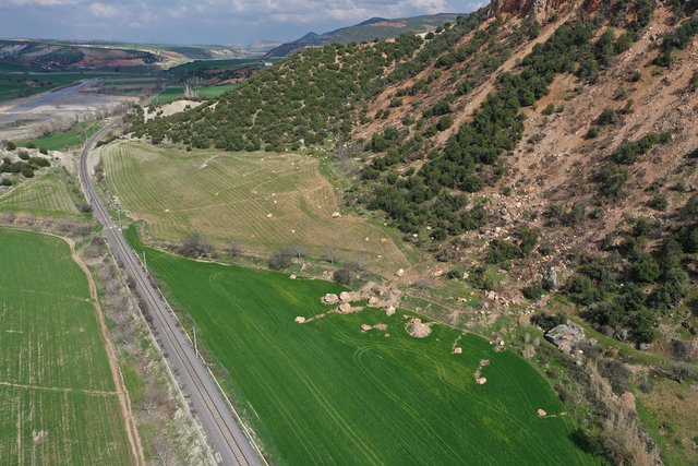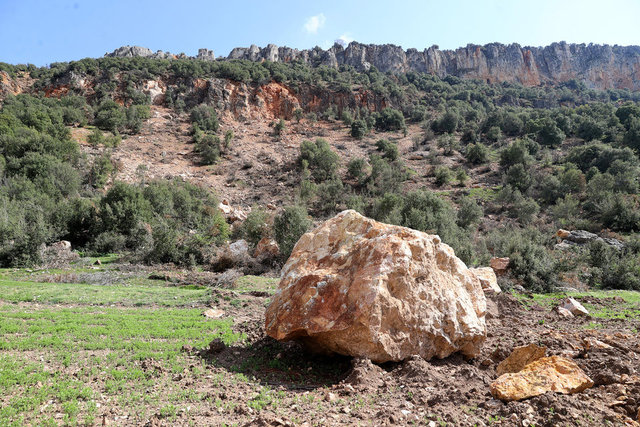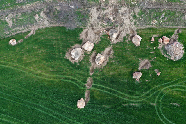 Kahramanmaraş'ta buğday tarlalarına yuvarlanan kayalar depremlerin etkisini gösteriyor