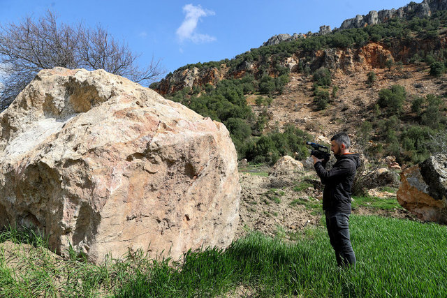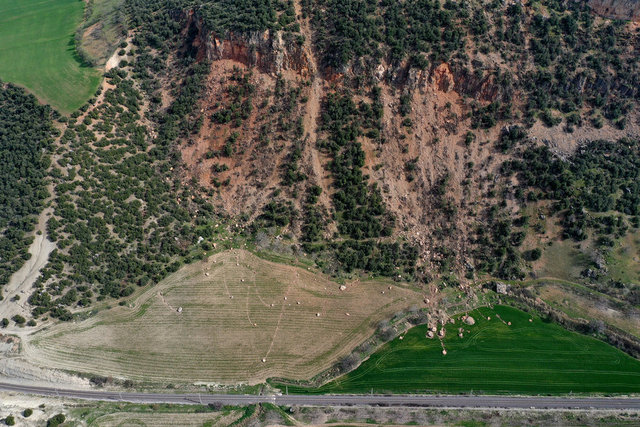 Deprem felaketinden neredeyse iki ay sonra ortaya çıkan görüntüler hayrete düşürdü. Kahramanmaraş'ta sarsıntı anında dev kayaların tarlalara yuvarlandığı belirlendi