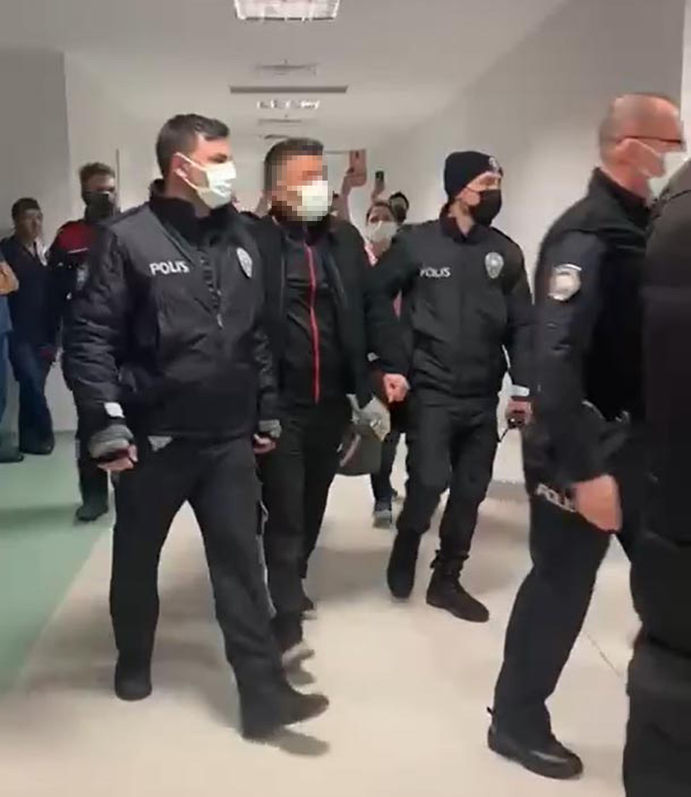 Muğla Eğitim ve Araştırma Hastanesi'ndeki apandisit ameliyatının ardından genel cerrahi servisinden taburcu edilen uzman çavuş A.A., sağlık çalışanlarının 'Sen şiddet, darp, hakaret ettin. Biz seni tedavi ettik, taburcu ediyoruz' sloganları arasında alkışla protesto edildi. Ekip aracına bindirilen A.A., ifadesi için Komiser Hamdi Bey Polis Merkezi'ne götürüldü.