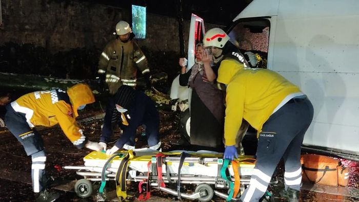 Beşiktaş'ta yağışlı havayla beraber sürücüsünün direksiyon hakimiyetini kaybettiği panelvan minibüs önce aydınlatma direğine ardından da ağaca çarptı. Çarpmanın etkisiyle ağaç devrilirken kazada bir kadın hafif yaralandı.