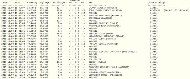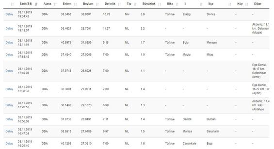 AFAD'ın verilerine göre, Türkiye ve çevresinde meydana gelen son depremler şöyle: