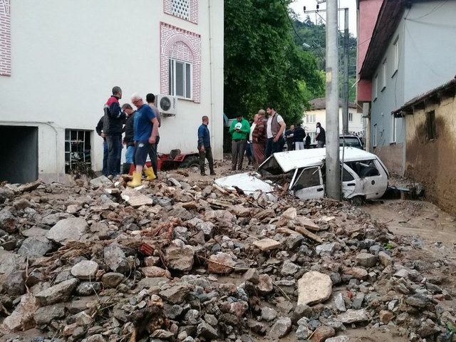 Köydeki onlarca otomobil, traktör, kamyonet ve römork da sel sularından nasibini aldı. Azgın sular yukarıdan aşağıya çok sayıda aracı sürüklerken, araçlar kullanılamaz hale geldi.