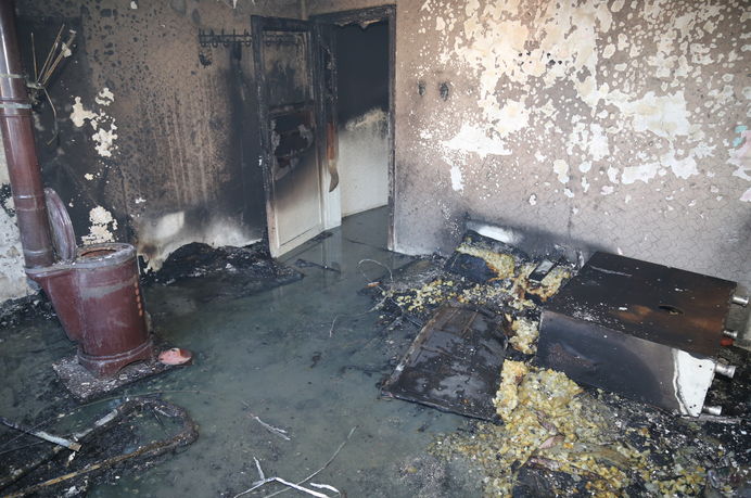 Edinilen bilgilere göre, evde 2 çocuğu bulunan anne kömür sobasını yakarak komşuya gitti. Soba alev alarak yanında bulunan beşiğe sıçradı.