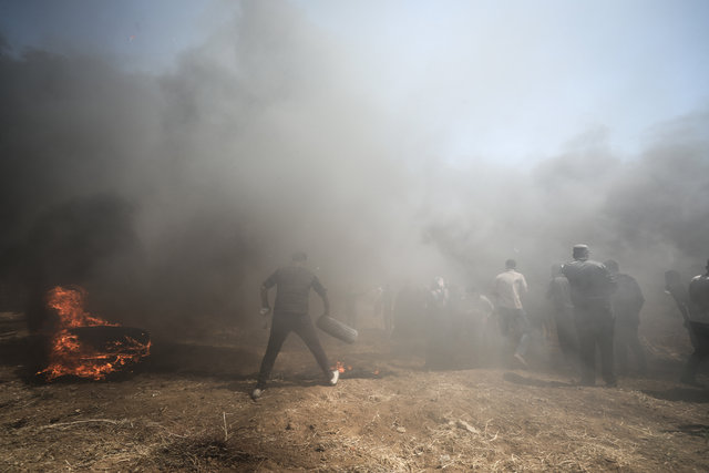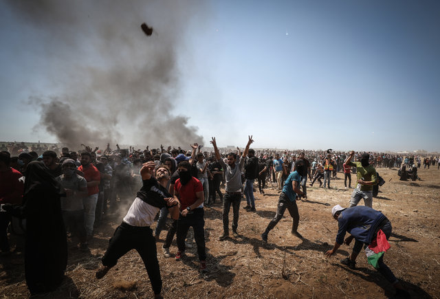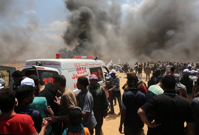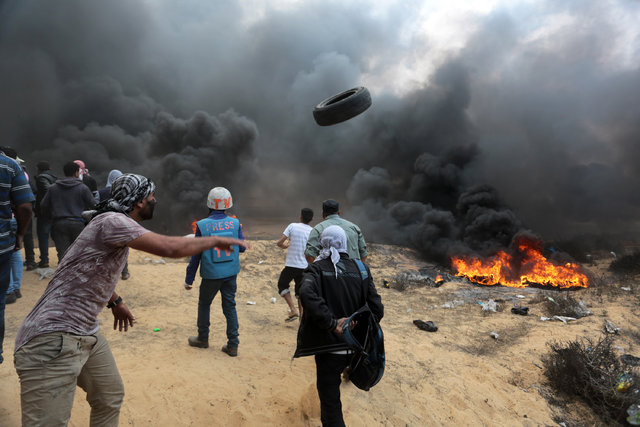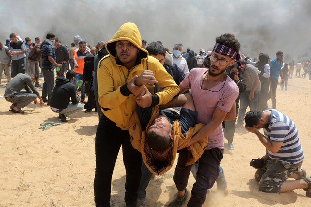 Son dakika! ABD Başkanı Donald Trump Aralık ayında açıkladığı kararının ardından bugün ABD'nin İsrail Büyükelçiliği Tel Aviv'den Kudüs'e taşındı. Gazze'deki protestolarda İsrail askerlerinin açtığı ateş sonucu 62 kişi hayatını kaybetti. 2 bin 410 Filistinli yaralandı. İşte Gazze'deki katliam gününün fotoğrafları