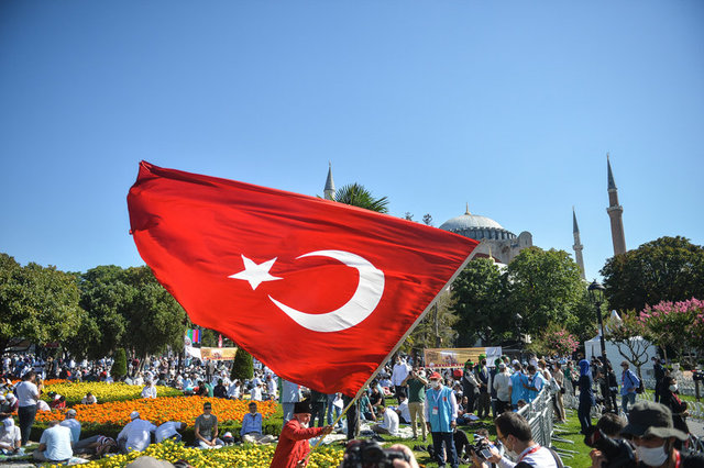 Türkiye Büyük Millet Meclisi (TBMM) Başkanı Mustafa Şentop, "Bugün Ayasofya’dan semaya yükselen ezan ve hatmi şerifler, irad edilecek hutbe ve eda edilecek Cuma namazı, milletimizin sabır ve dualarının tecellisi; tarihte çığır açan bir liderlik ve cesaretin nişanesi; kıyamete kadar varolacak azim ve kararlılığın ilanı olacak inşaallah. Allah’a sonsuz şükürler olsun, İstanbul’un aziz Fatih’inin vasiyeti yerine geldi, emanet emin ellerde" dedi.