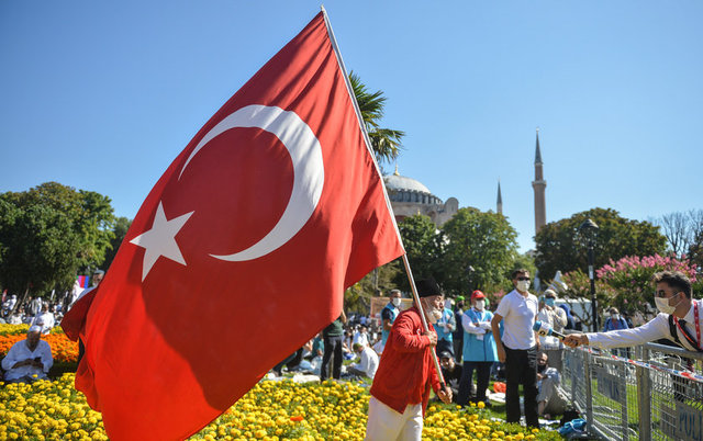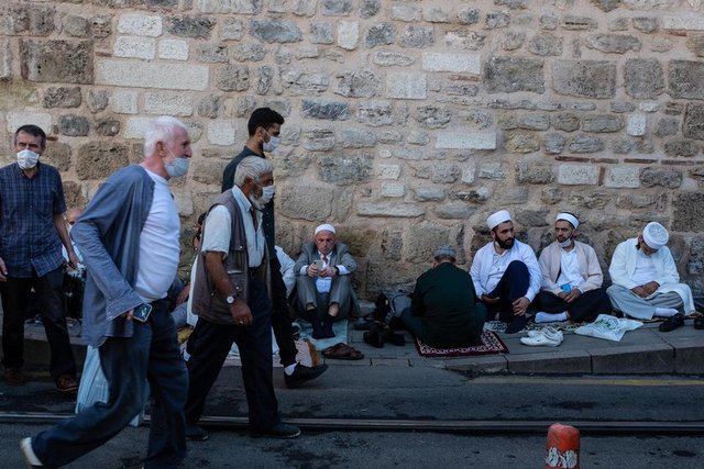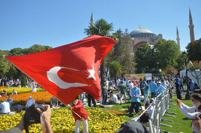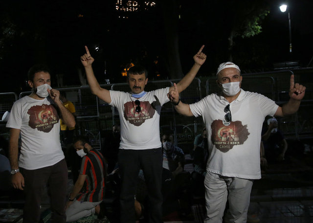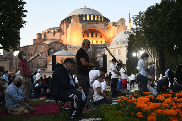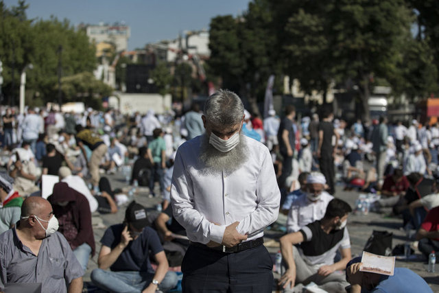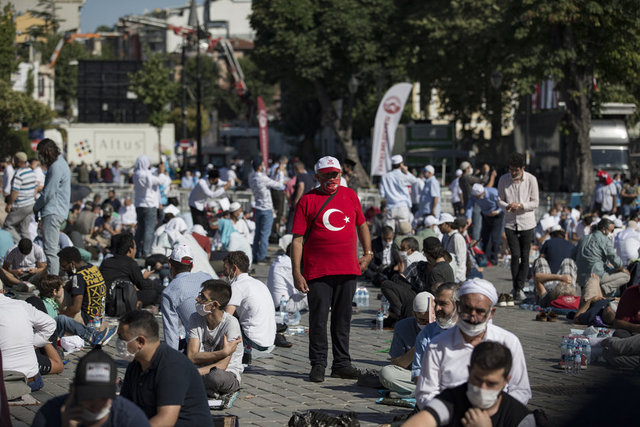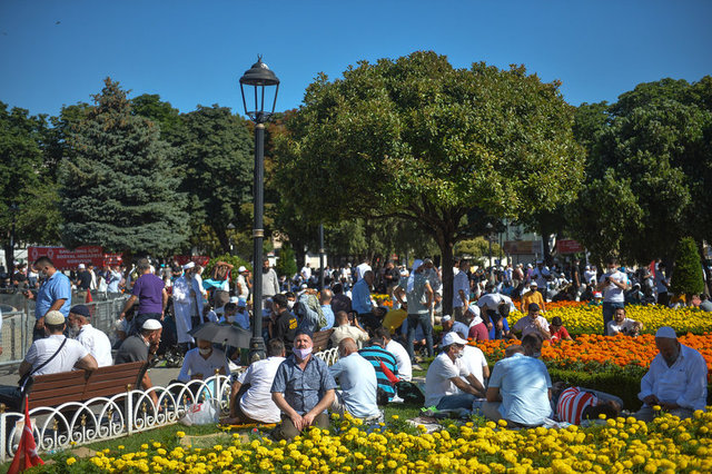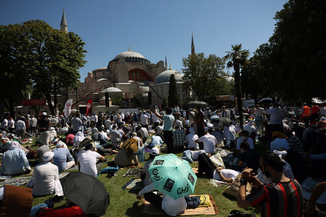 İstanbul Valisi Ali Yerlikaya, Ayasofya Camii çevresindeki namaz kılma alanlarının tamamının dolduğunu, salgın nedeniyle misafir girişlerinin durdurulduğunu belirtti.