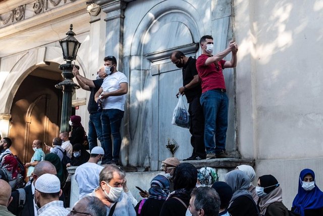 İçeride ve pencere önünden dua eden vatandaşlar daha sonra türbeden ayrılarak cuma namazının kılınacağı Ayasofya-i Kebir Cami-i Şerifi'ne gitti.
