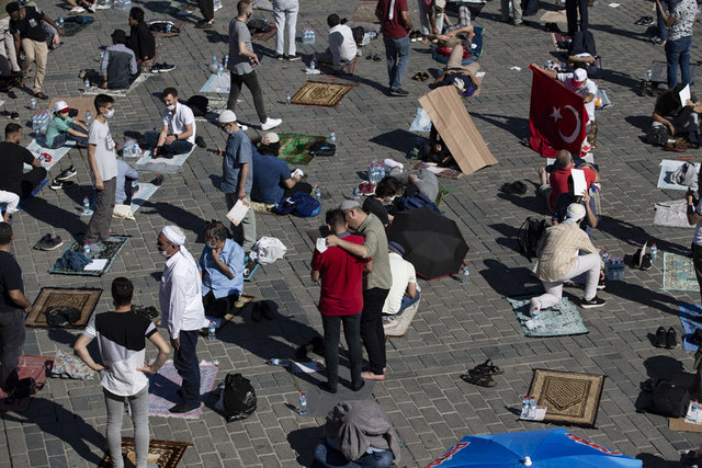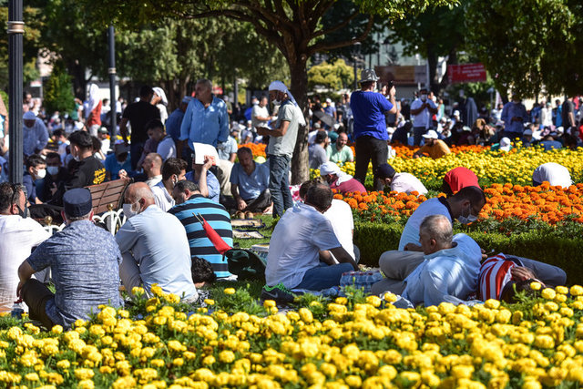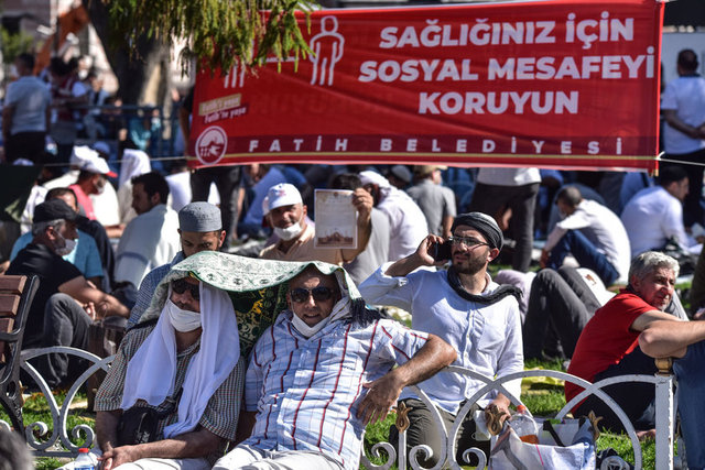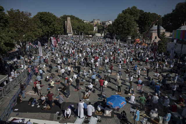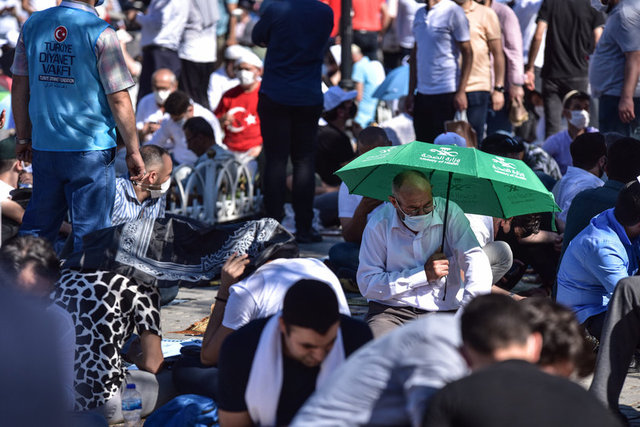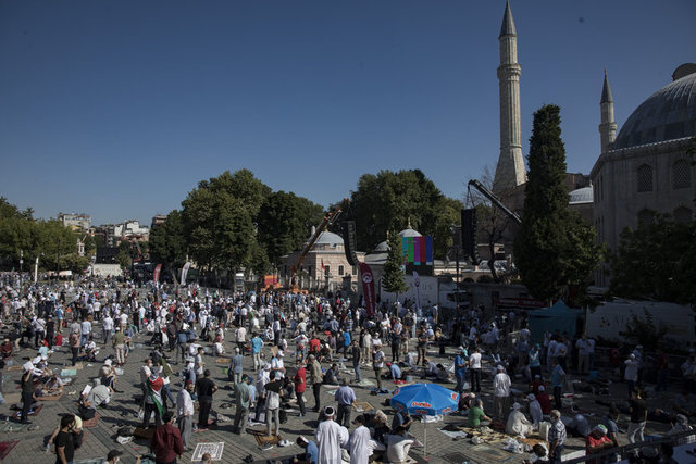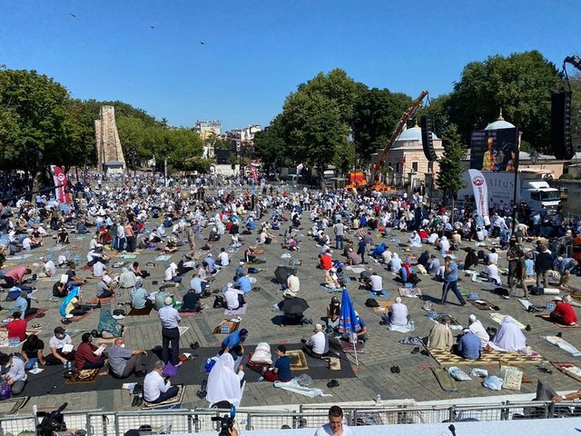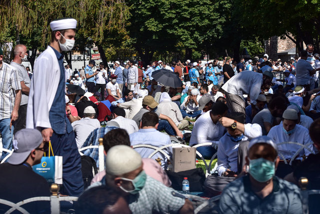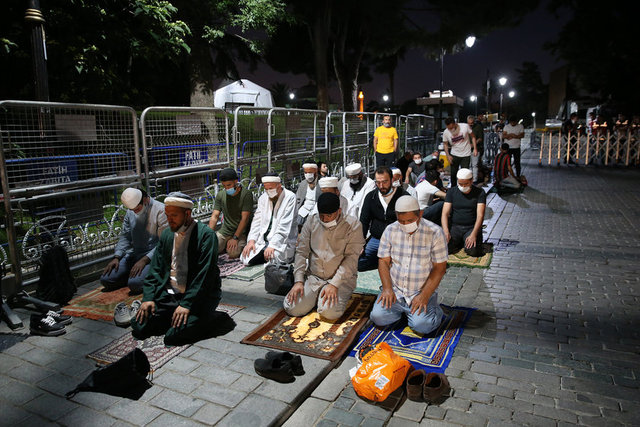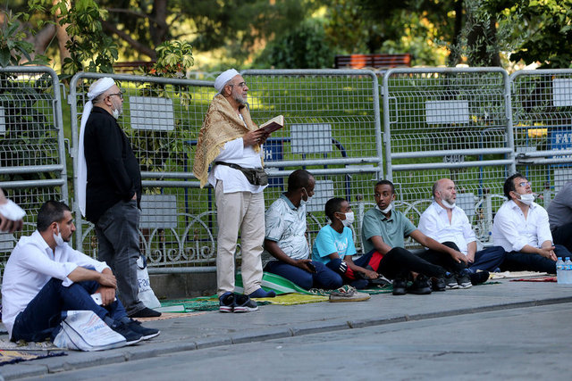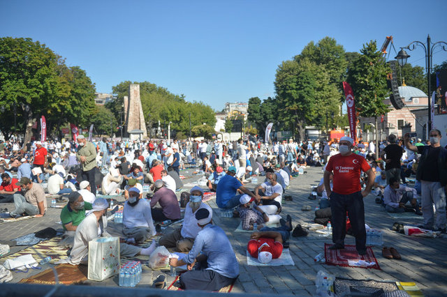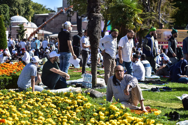 Salgın nedeniyle Ayasofya Camisi ve çevresinde kadınlar için 2, erkekler için 3 olmak üzere 5 farklı açık alan, namaz kılma yeri olarak belirlendi. Erkekler için Ayasofya Meydanı, Sultanahmet Meydanı ve Yerebatan Caddesi; kadınlar için Sultanahmet Türbesi yanındaki alan ile Mehmet Akif Parkı tahsis edildi.